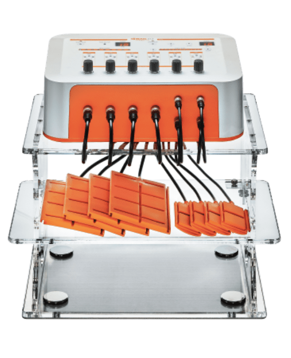 EMSとはElectrical Muscle Stimulation(電気的筋肉刺激)の略で、深部の筋肉に対し直接電気的刺激を与えることにより、脳からの命令とは無関係に赤筋を積極的に使う運動を促しエネルギー消費を促進させることを可能にしたエレクトロトレーニングシステムです。