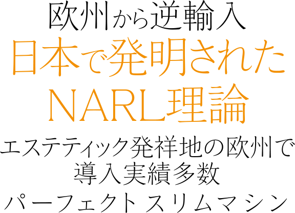「NARLSONIC(ナールソニック)」は周波数517kHzという特殊な微弱超音波を用いて、今まで不可能とされていた、気になる部分だけのポイントスリムを可能にしたメディカルエステ技術です。