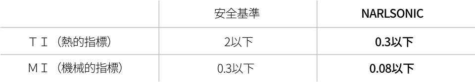 NARL(ナール)とは、「Nor Adrenaline ReLease」の略語で、周波数517Khz 出力強度110mW/cm²の超低周波域の特殊な微弱超音波です。